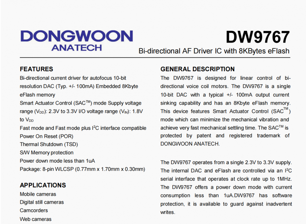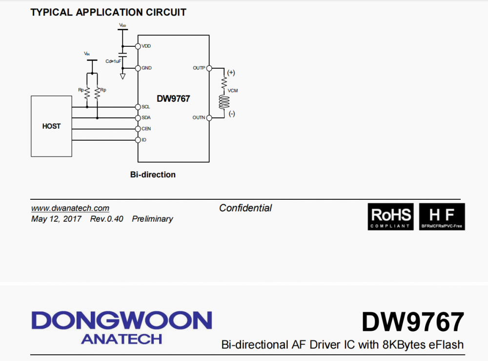 平台: 海思59V200 双系统 Sensor:imx586 (手机类sensor) 马达驱动芯片:DW9767 (手机类马达驱动芯片),如图,贴在fpc板上,推动铁壳内的镜头上下移动 无光学变焦,只实现自动对焦 已有手机平台端的驱动代码以及马达驱动芯片规格书 要求失焦率不高于 5% 对焦速度500ms以内 对焦范围:10~infinity