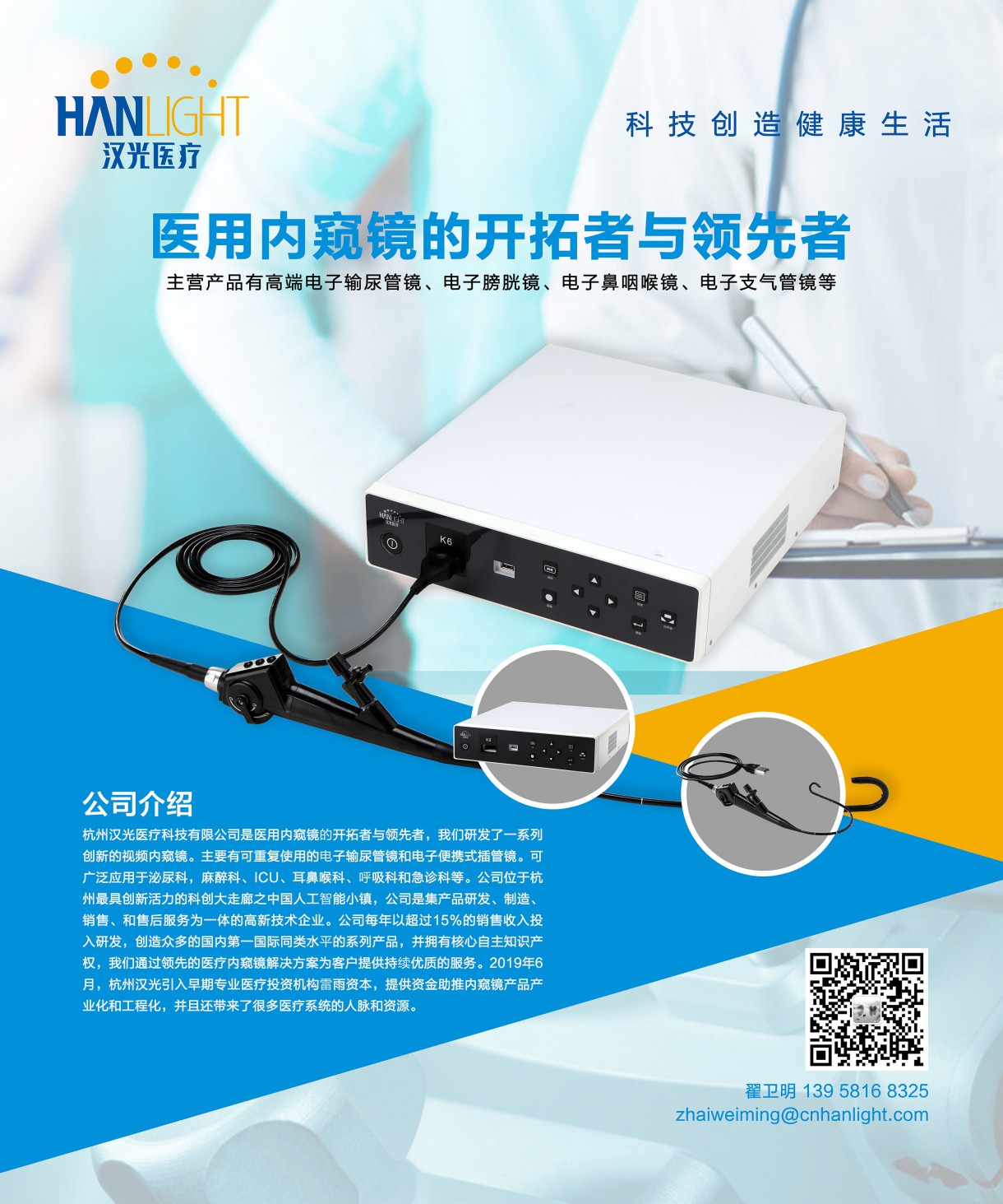 公司位于杭州最具创新活力的科创大走廊之中国人工智能小镇,公司是集产品研发、制造、销售、和售后服务为一体的高新技术企业。公司每年以超过15%的销售收入投入研发,创造众多的国内第一国际同类水平的系列产品,并拥有核心自主知识产权,我们通过领先的医疗内窥镜解决方案为客户提供持续优质的服务。