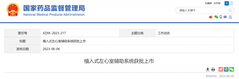 日前,深圳核心医疗科技股份有限公司(以下简称“核心医疗”)自主研发的创新医械Corheart®6植入式左心室辅助系统,正式获国家药品监督管理局批准上市,注册证编号为国械注准20233120716。