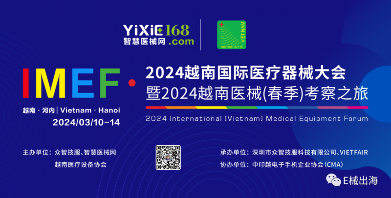 出海创收是当今中国医疗器械企业发展的必然之局,面对陌生的海外市场,如何踏浪出海实现产品全球市场价值,更是每个企业必须迎接的挑战。因此为推动中国医疗器械出海,深圳市众智技服科技有限公司(智慧医械网)联合越南卫生部、越南医疗设备协会将于2024年3月10日-14日联合主办“IMEF•2024越南国际医疗器械大会暨2024越南医械(春季)考察之旅”。本次大会将邀请50余位越南知名专家医生、渠道代理商以及国内40余家医疗器械创新企业,将围绕越南医学临床、法律/法规、售后/维修、医院考察/对接等为主。加速中国医械出海进程;