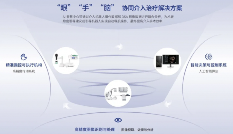 该产品属于支架递送型机器人,采用隔室控制介入机器人手术系统、基于仿生学的导丝控制技术和柔性导丝阻力检测技术。隔室控制介入机器人手术系统采用主从架构设计,具有低延时、高安全操作特点。