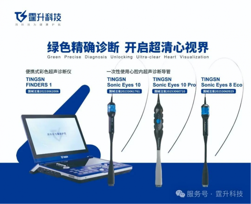 2025 年 6 月 20 日霆升科技新获批的 TINGSN Sonic Eyes 10 Eco 心腔内超声导管(注册证编号:国械注准20253061164)正式获得国家药品监督管理局批准。作为霆升科技重点布局的海外出口型号,它承载着 “中国智造” 的强大实力,将为全球心脏疾病诊疗提供全新解决方案。