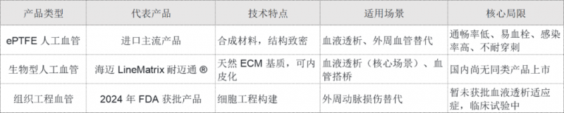 目前全球获批的小口径人工血管主要分为三类,海迈医疗产品在技术路线和临床性能上均实现差异化突破: