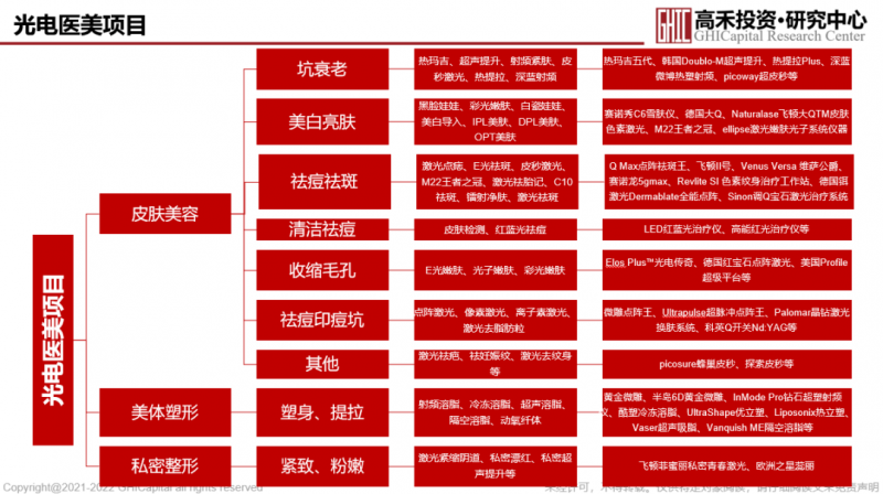 实际上,光电类项目属于轻医美方向,也是高禾投资研究中心长期以来一致密切关注和研究的方向,可以参看《「轻医美」行业分析报告》等。