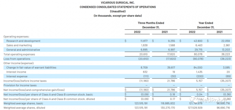 #Vicarious Surgical发布2022年报