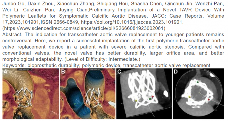 “目前,TAVR已经成为治疗老年高危或不适合手术的主动脉瓣狭窄患者的有效替代方案,但是对于较为年轻的患者,由于传统的生物材料人工心脏瓣膜存在耐久性不足、易钙化等问题,TAVR的适应证还存在争议。因此,探索新型材料和设计的人工心脏瓣膜,提高其耐久性和血液动力学性能,是目前TAVR领域的一个重要课题。我们很高兴能够成为世界第一个在临床上应用此项创新技术的中心,并将成果发表在国际顶尖的心血管杂志上,为推动TAVR技术的发展和普及做出贡献。”