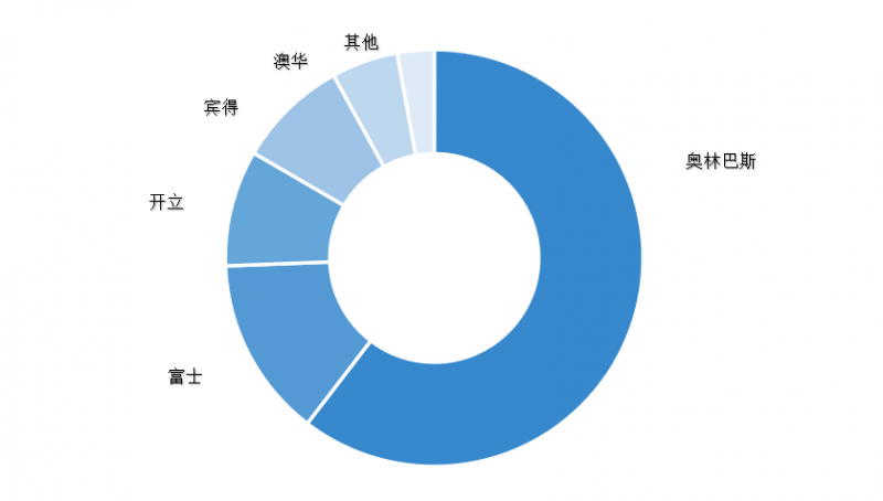 超声内镜的市场份额占整个软镜市场的12%左右。目前全球仅奥林巴斯、宾得、富士拥有该技术。在中国市场上超声内窥镜产品主要以开立医疗、英美达医疗、乐普智影等都国内取证并销售;