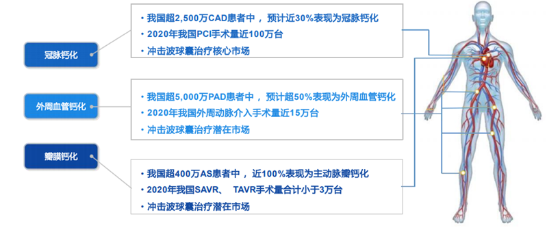 随着我国人口老龄化、肥胖、糖尿病等慢性疾病的发病率上升,导致冠状动脉疾病的患病率和患者数量也在增加。根据弗若斯特沙利文的预测,2030年我国冠状动脉疾病患病人数将达到3200万人。而从2021年我国冠脉介入手术(PCI)的患者数据可以看出,有超3成患者已经出现了钙化病变,目前冠脉钙化的处理已经是PCI手术临床的刚性需求。