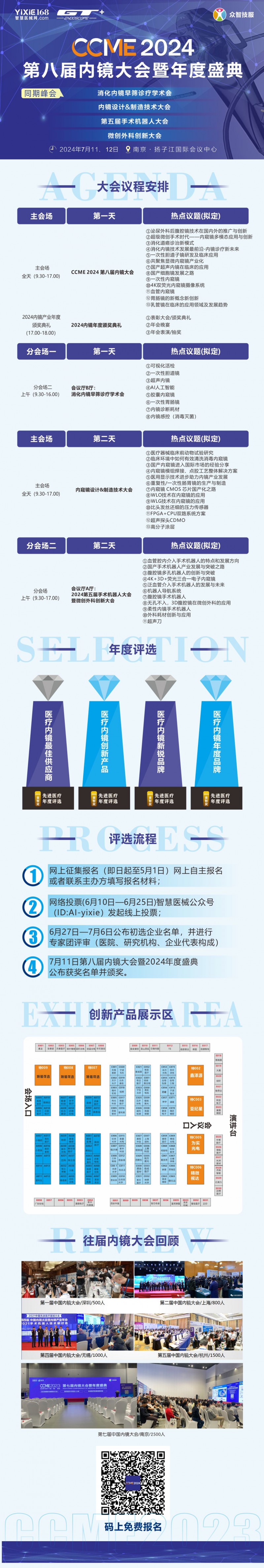 2024年7月11-12日在中国·南京扬子江国际会议中心举办“CCME 2024第八届中国内镜大会暨年度盛典”、“内镜设计&制造技术大会“第五届手术机器人大会暨微创外科研讨会”。大会预计参会人数将超过3000人,展出的新产品、新技术将超过250个。同时,还有多场分论坛。论坛将围绕消化科、呼吸科、泌尿科、妇科、儿科、肝胆外科、神经科、关节脊椎、骨科等多个科室,展开临床应用、科室建设、供应链技术、产品应用及技术发展进行探讨与交流。 大会通过整合优势供应链、促进医工融合、增强行业技术交流、组织企业攻关关键技术等方式,有效的推动了国产医疗内镜产业的发展。同时,也进一步的推动了高端医疗器械国产化的进程。
