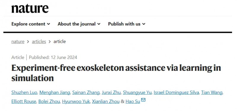 近日,来自北卡罗来纳州立大学与北卡罗来纳大学教堂山分校的苏浩教授团队在顶级学术期刊“Nature”上发表了题为“Experiment-free Exoskeleton Assistance via Learning in Simulation”的突破性研究论文,他们利用仿真模型和数据驱动的强化学习技术,尝试在不进行人体实验的情况下,通过仿真学习一个通用且适应多种运动活动的控制策略。这种方法旨在通过仿真模拟人体肌肉骨骼系统和外骨骼的动态特性,实现控制器的高效学习和优化,从而弥合仿真与实际应用之间的差距。