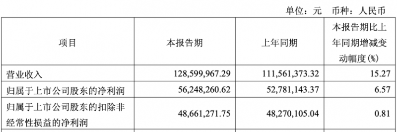 此外,其第一季度营收与净利润同样稳步增长。公司实现营业总收入1.29亿元,同比增长15.27%;归母净利润5624.83万元,同比增长6.57%;扣非净利润4866.13万元,同比增长0.81%。