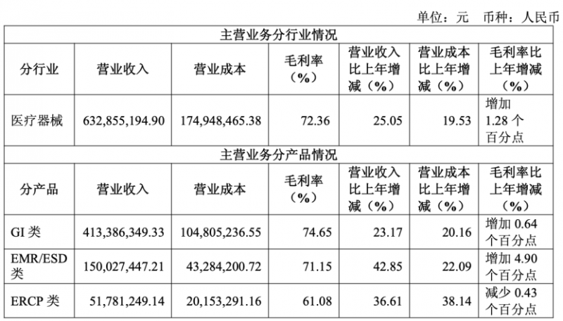 从产品来看,安杰思高附加值品类增长显著,GI类产品收入4.13亿元,同比增长23.17%,毛利率提升0.64个百分点至74.65%;EMR/ESD类产品收入1.50亿元,同比+42.85%,毛利率71.15%(同比+4.90个百分点);公司主营业务毛利率为72.36%,较去年同期增加1.28个百分点。