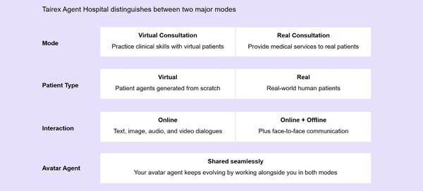 Hospitals can establish comprehensive partnerships with Tairex to co-develop AI hospitals. In addition to securing test access in bulk, partners can benefit from customized training environments, specialized AI patients Agents, and other tailored features. Going forward, Tairex plans to provide partner hospitals with access to real-world consultation room modes and related capabilities.