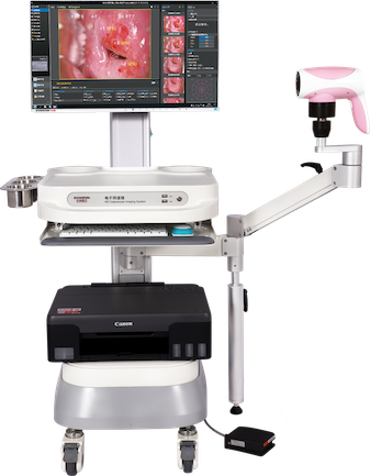 * 集成多维成像质控和智能辅助AI诊断评估功能,动态标记宫颈可疑病变范围和活检部位,智能提示病变程度和处理意见;