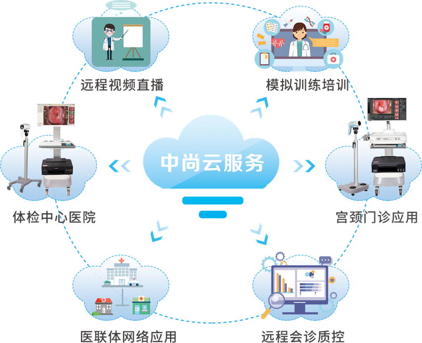 * 支持在线使用“中尚阴道镜模拟训练系统”,满足云服务的在线阴道镜初学者培训、阴道镜图像判读和典型病例教学培训应用;