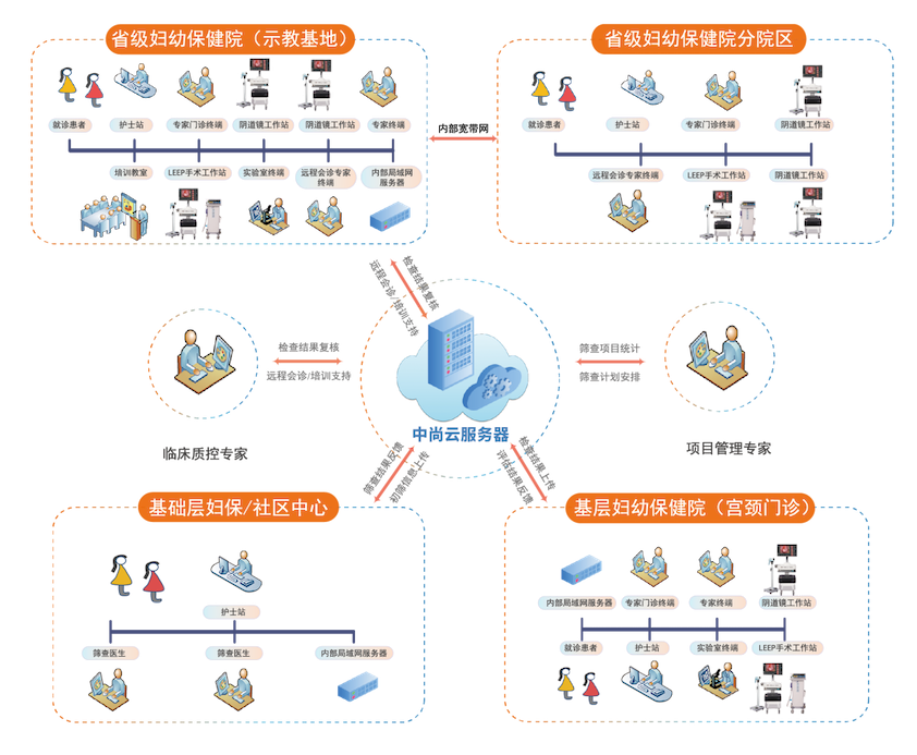 * 打通信息化管理闭环:真正实现筛查-诊断-治疗-随访流程的可追溯管理瓶颈,高效解决宫颈癌筛查信息化管理的痛点问题;