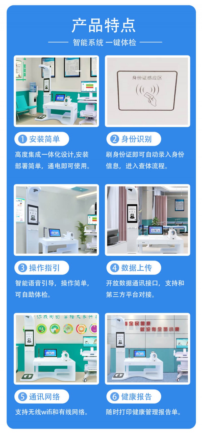 上正华瑞智能健康体检设备不仅能够提供检测数据,还能根据用户的检测结果和健康状况,提供个性化的健康建议和指导。这些建议包括饮食调整、运动计划、疾病预防等方面的内容,有助于用户更好地管理自己的健康。