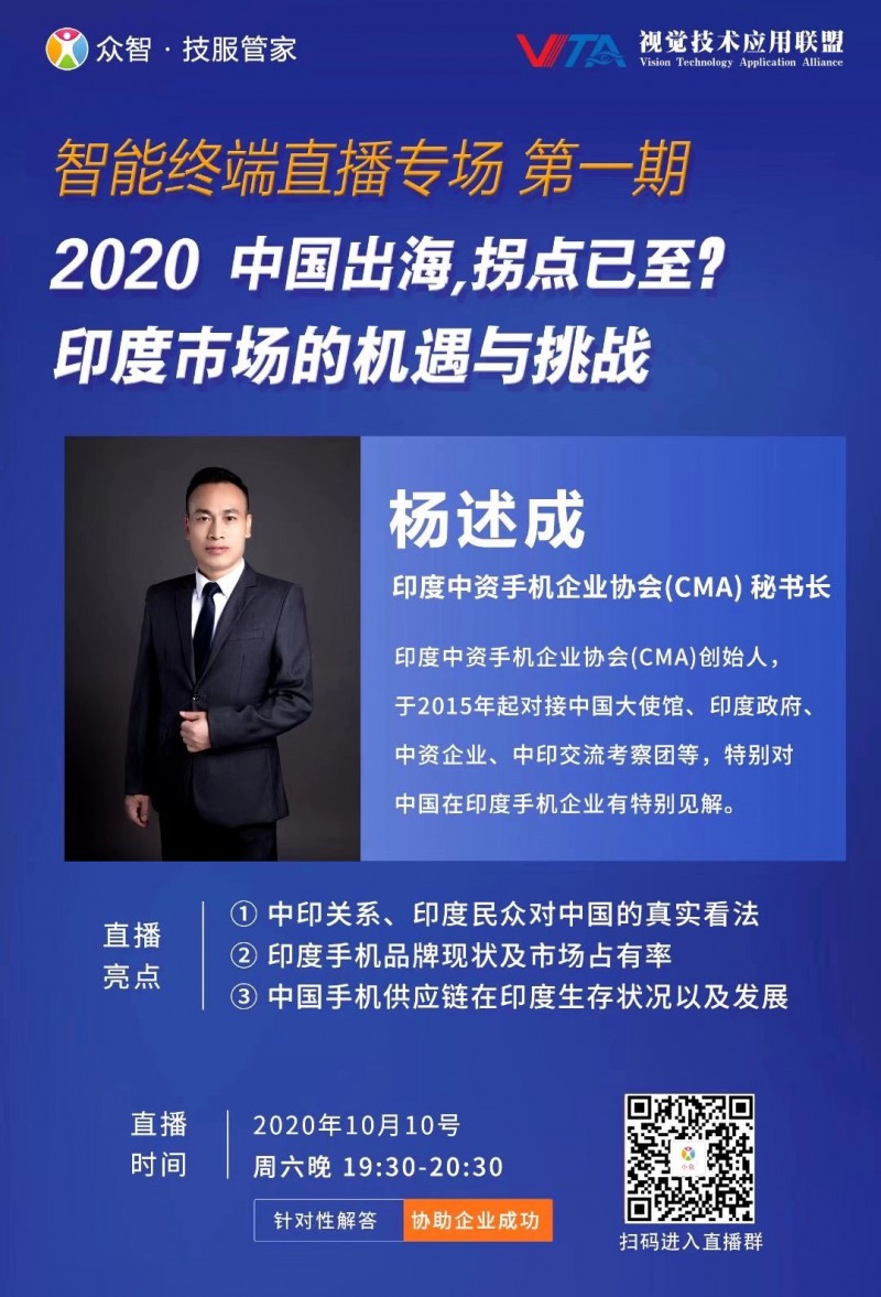 10月10日,杨述成将会在关于中印关系、印度民众对中国真实看法、中国手机供应链在印度生存状况以及发展、印度疫情影响等方面在线直播。