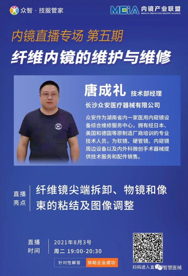 l 长沙众安医疗器械有限公司 技术部经理 l 众安作为湖南省内一家医用内窥镜设备综合维修服务中心,拥有经日本、美国和德国等原制造厂商培训的专业技术人员,为软镜、硬管镜、内窥镜周边设备以及内外科微创手术器械提供技术服务和配件销售。
